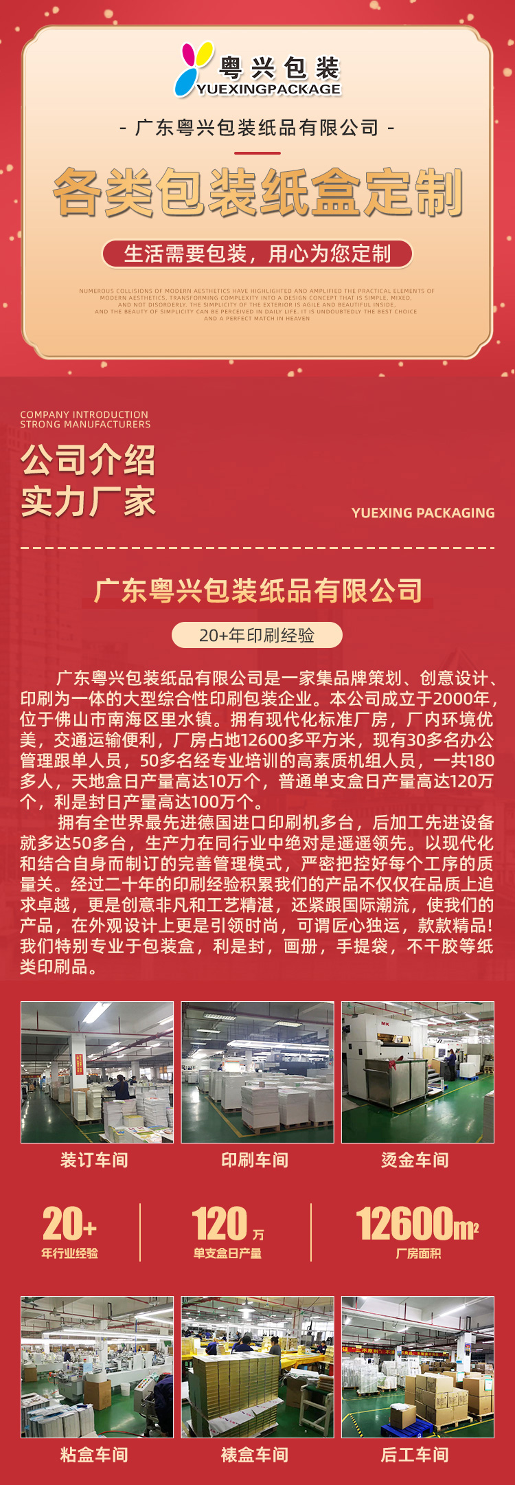 ABOUT US广东粤兴包装纸品有限公司注册地址位于佛山市南海区里水镇河村西紫大头岗一街3号A栋3楼301室(住所申报),注册机关为佛山市南海区市场监督管理局,法人代表为李海,经营范围包括一般项目:纸和纸板容器制造;纸制品销售;纸制品制造;包装服务;包装材料及制品销售;塑料包装箱及容器制造;贸易经纪;国内贸易代理。(除依法须经批准的项目外,凭营业执照依法自主开展经营活动)